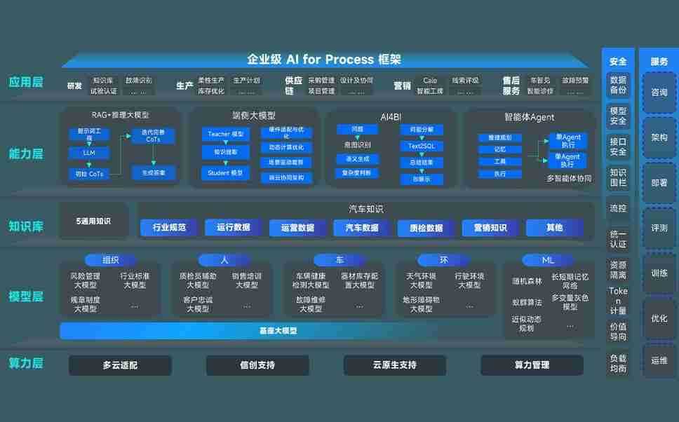聚彩堂问学智车解决方案是一套基于AI技术的汽车行业智能化系统,,覆盖从底层算力到顶层AI应用的全栈方案。。方案由算力层、、、、模型层和应用层组成:算力层,,方案支持多种一体机配置,,,,具备云端灵活部署、、、多云适配以及动态优化计算资源的能力;模型层,,聚彩堂问学平台版提供了企业级AI应用一站式构建与管理平台,,,,支持基于后训练强化技术的汽车企业专属模型的训练、、、、评测和运营;应用层,,,聚彩堂问学DeepSeek版提供包括超级员工、、、、智能招采、、、智能营销、、、、智能客服、、、AI for BI等一系列解决方案,,,,可助力汽车行业实现数字化转型,,,让管理更智能、、、、响应更敏捷。。。