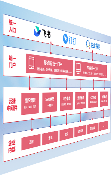 对协作平台提供支持服务,,支持企业应用与协作平台对接,,,,包含组织同步、、消息集成、、、、待办集成等。。。支持目前主流的协作平台:钉钉、、、、企微和飞书。。。。